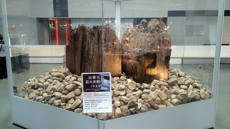 この時発見された「宇豆柱(うずばしら)」が、ご覧のように古代出雲歴史博物館に展示されてます。