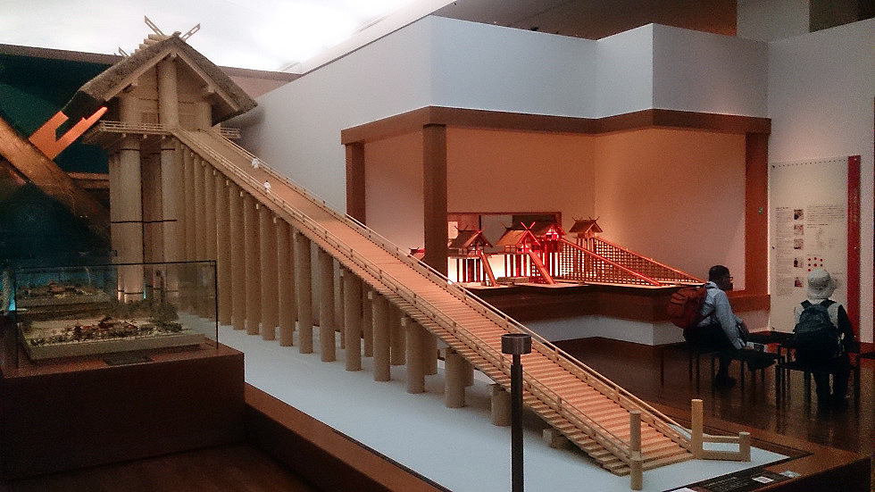 ご存知の通りオオクニヌシ、大国主命は出雲大社に鎮座しています。平安時代の出雲大社は、高さが48mもあったらしい。その1/10の復元模型がこれ。古代出雲歴史博物館に展示されてます。